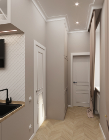 Лучшим выходом из ситуации может стать расширение дверного проема, создание красивой арки, что создаст впечатление дополнительного пространства, использование легких занавесок (например, шторы-нити для кухни) или раздвижных дверей. Причем использование раздвижных дверей или занавесок будет более предпочтительным, ведь это будет препятствовать распространению запахов по всей квартире.